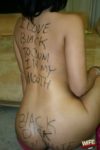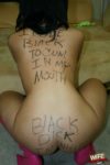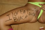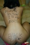 Avy Lee Roth is sucking on a big black cock after to wrote slutty things all over her body!