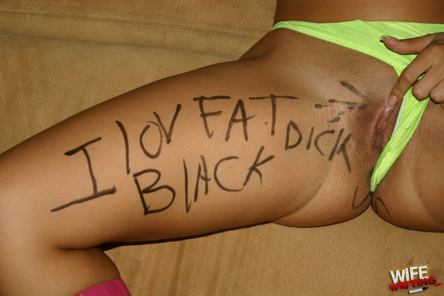 Avy Lee Roth is sucking on a big black cock after to wrote slutty things all over her body!